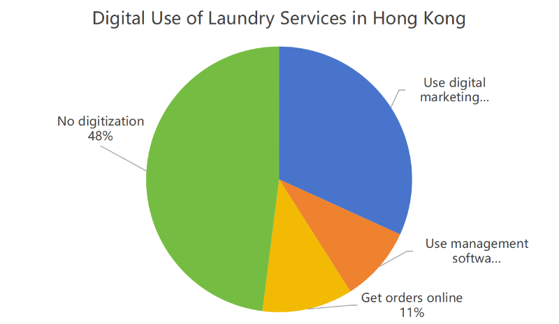 Według wyników naszego badania cyfrowa transformacja Hongkongu „ branża pralnicza jest wciąż w powijakach. Wśród firm, które udzieliły odpowiedzi, 48% nie korzystało z aplikacji cyfrowych, system przyjmowania zamówień w sieci pralni stanowił około 11%, a system zarządzania magazynowaniem zamówień klientów, system RFID, system zarządzania relacjami z klientami, system zarządzania informacją logistyczną i system ERP stanowiły niecałe 10%. Więc my „ ponownie kładziemy duży nacisk na transformację cyfrową.