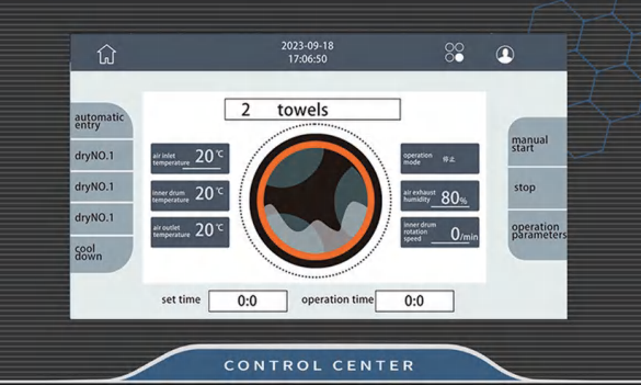 Bęben wewnętrzny, zaprojektowany ze stosunkiem ładowności 1:18, wykonany jest ze stali nierdzewnej 304 i ma duże drzwiczki, co ułatwia załadunek i rozładunek ubrań.